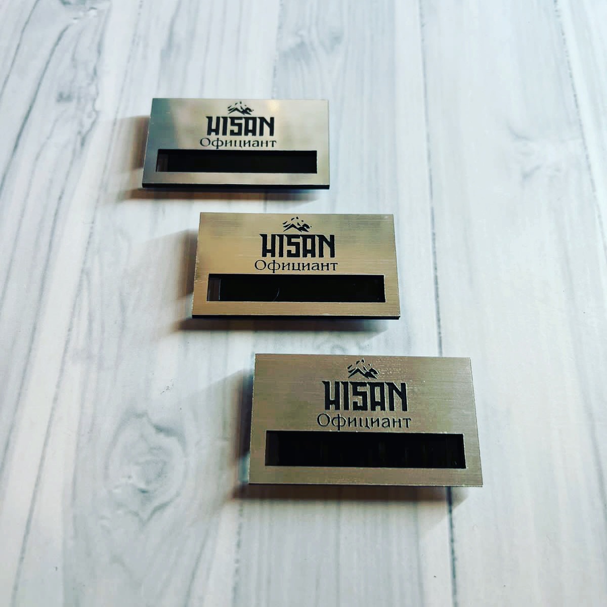 Бейджи с гравировкой производятся на пластике золотого или серебряного цвета. Изображение на бейдж наносится только в один цвет.