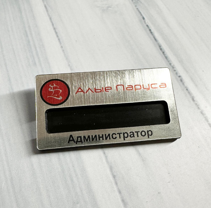 Бейджи с гравировкой производятся на пластике золотого или серебряного цвета. Изображение на бейдж наносится только в один цвет.